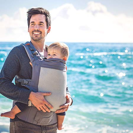 I appreciate that this carrier is available in two varieties, one made of 100% cotton fabric and the other of moisture-wicking microfiber fabric with a breathable mesh panel for enhanced comfort on warm days. This carrier also has an ergonomic design with great weight capacities.